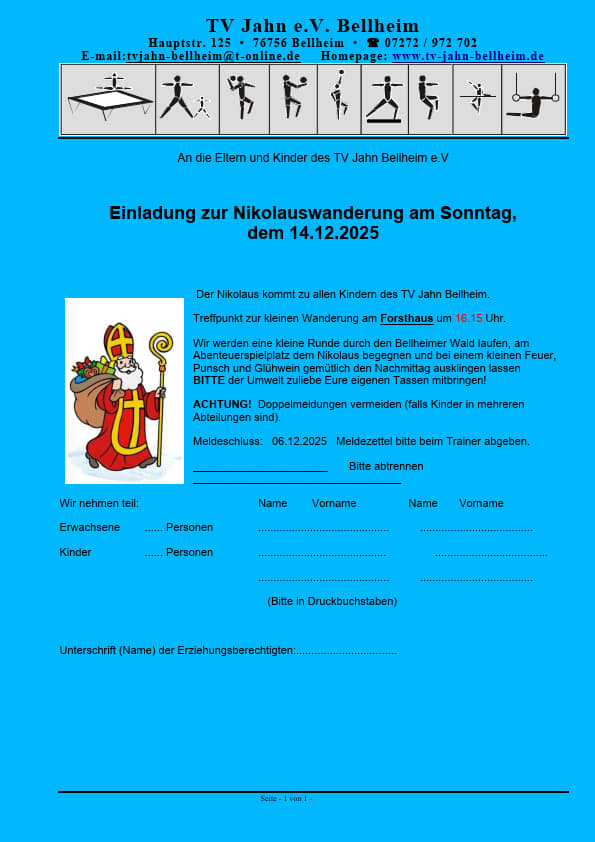Tagesordnungspunkte: 1. Nikolauswanderung 14.12.2025