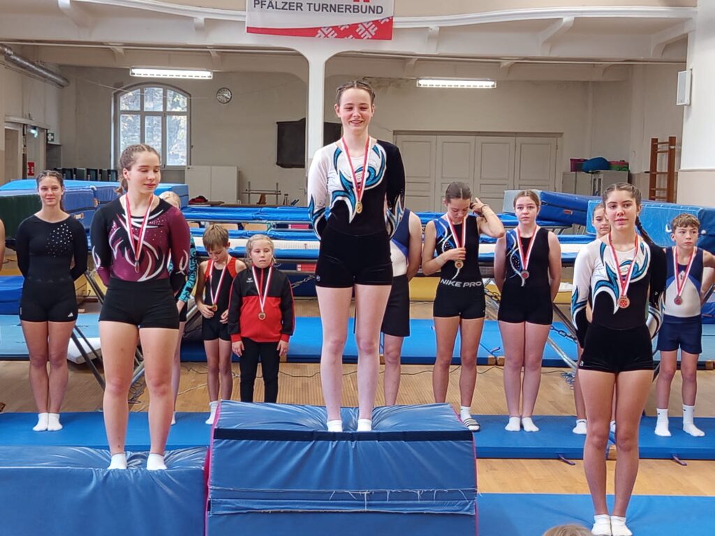 Die Pfalzmeisterschaften fanden am 27.9. 2025 in Neustadt statt. Der TV Jahn war mit 7 Teilnehmern am Start. Für alle Springer war es der erste Einzelstart. Die Aufregung war groß, besonders weil der Schwierigkeitsgrad der Pflichtübung höher als beim Ligawettkampf ist.